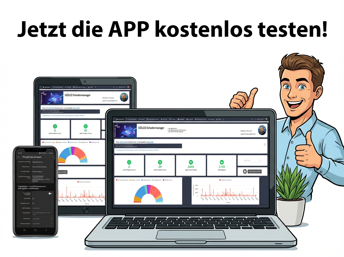 das nächste Level in Ihrer Arbeitseffizienz! Mit unserer digitalen Schadenmanagement Software können Sie Ihre Projekte von überall und mit jedem Endgerät einsehen und bearbeiten. Mit smarten Funktionen erfassen Sie Bilder, Messwerte und Geräte direkt am Schadensort digital.