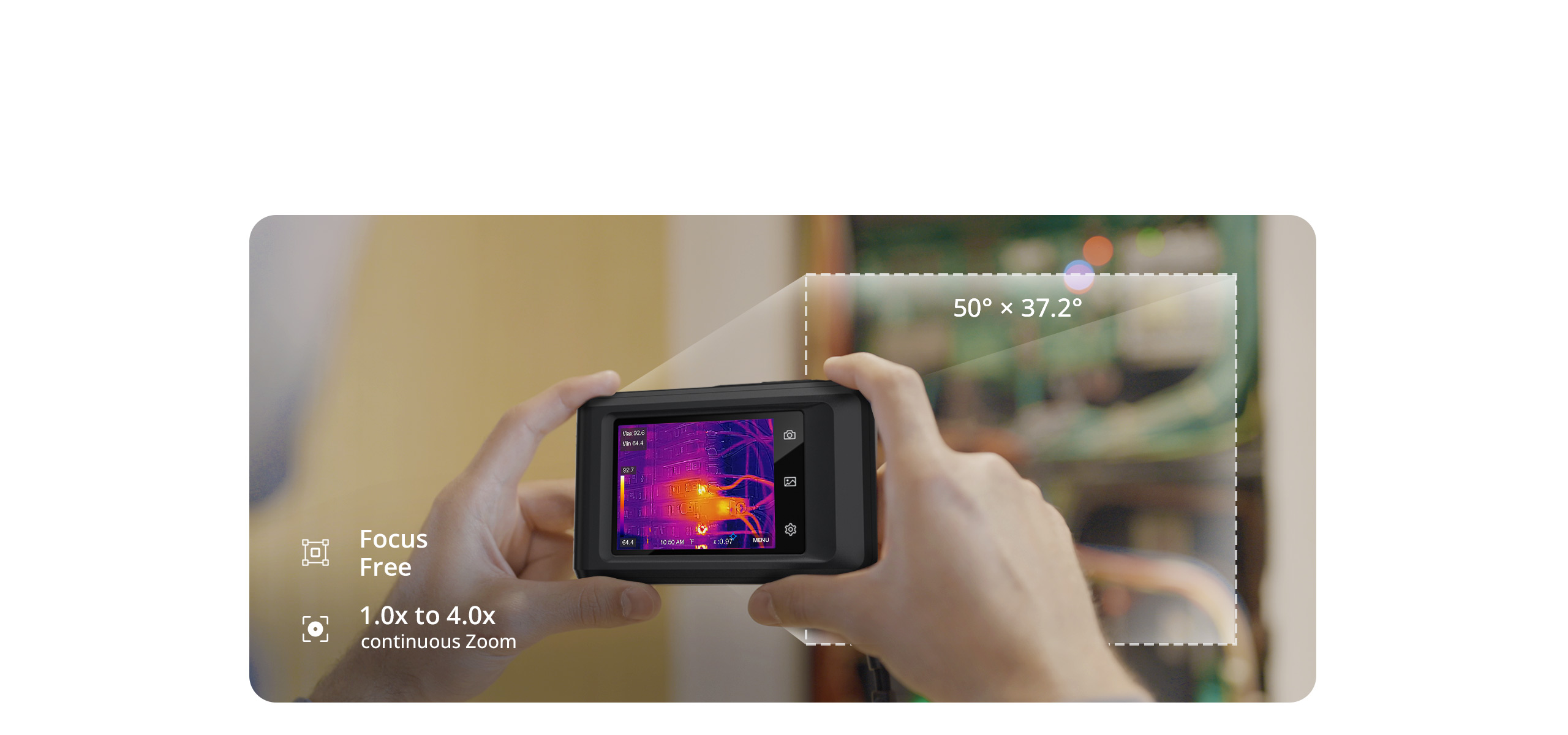 Dank des großen 3,5-Zoll-Touchdisplays und der intuitiven Benutzeroberfläche ist die Bedienung besonders einfach und komfortabel. Die Pocket2 bietet zahlreiche Analysefunktionen, darunter die automatische Erkennung von Temperatur-Hotspots, verschiedene Messmodi sowie die Überlagerung von Wärmebild und Echtbild (Fusion).